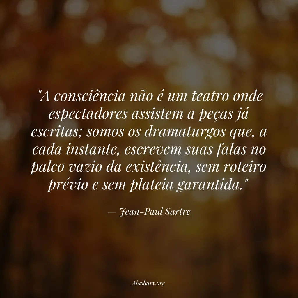"A consciência não é um teatro onde espectadores assistem a peças já escritas; somos os dramaturgos que, a cada instante, escrevem suas falas no palco vazio da existência, sem roteiro prévio e sem plateia garantida."