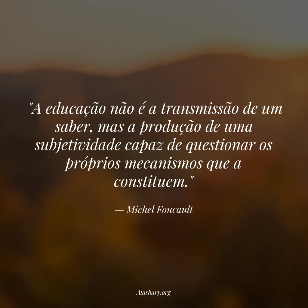 Esta citação, inspirada no pensamento de Foucault, reflete sua crítica à educação como mera reprodução de saberes estabelecidos. Em vez disso, enfatiza seu papel na formação de sujeitos críticos.