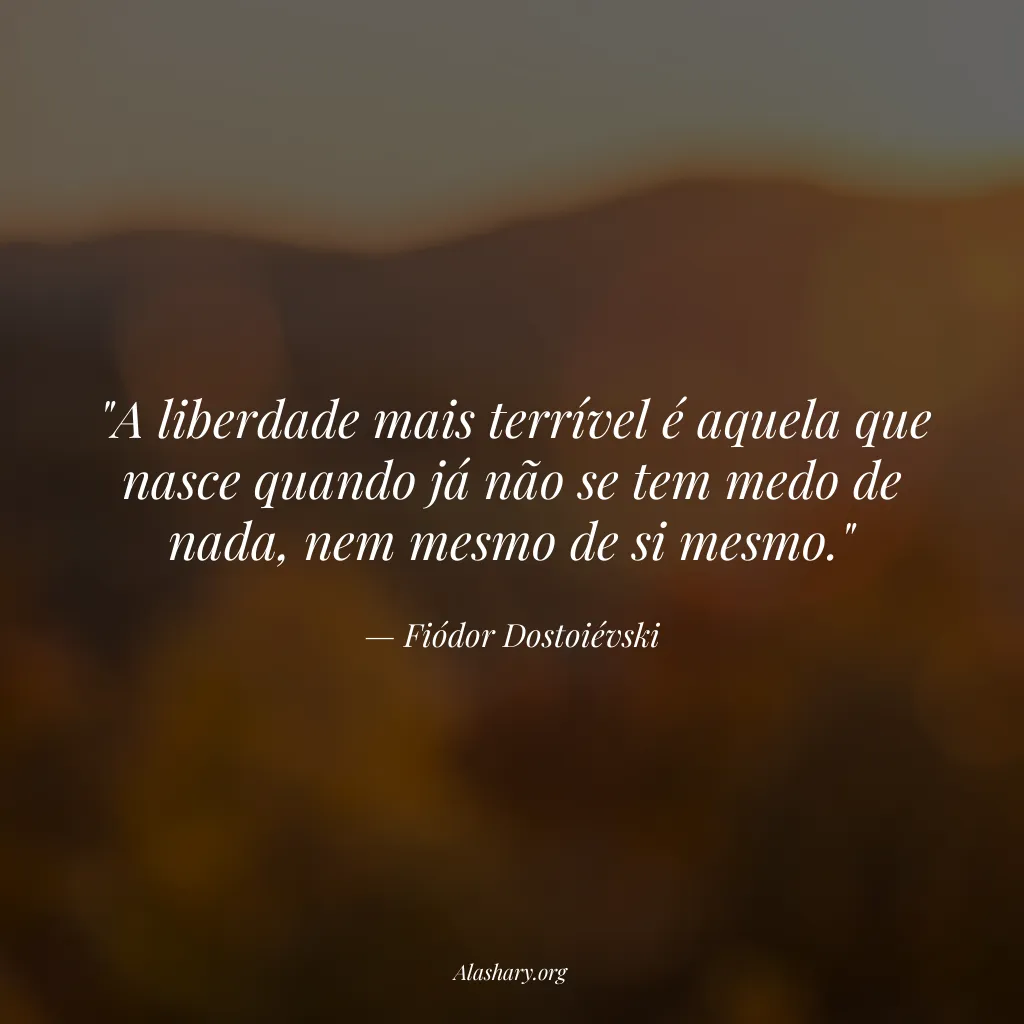"A liberdade mais terrível é aquela que nasce quando já não se tem medo de nada, nem mesmo de si mesmo."