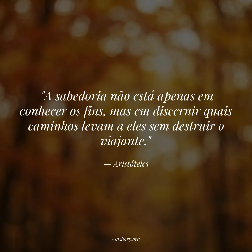 "A sabedoria não está apenas em conhecer os fins, mas em discernir quais caminhos levam a eles sem destruir o viajante."