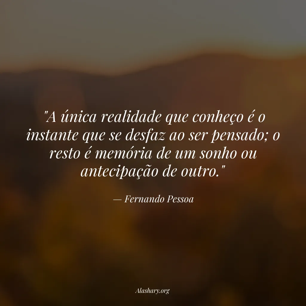 "A única realidade que conheço é o instante que se desfaz ao ser pensado; o resto é memória de um sonho ou antecipação de outro."