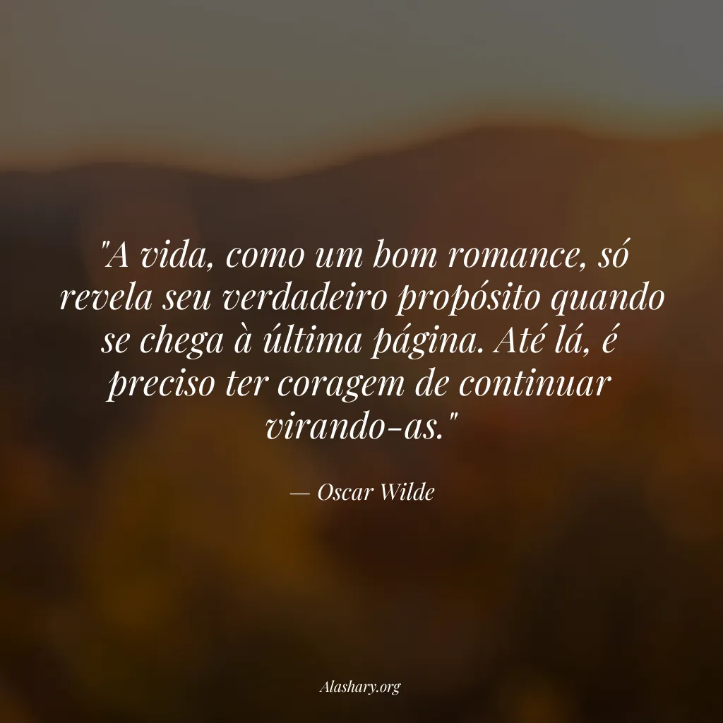 Wilde compara a vida a uma narrativa literária, sugerindo que seu significado completo só se revela retrospectivamente. A metáfora enfatiza a importância de persistir através das dificuldades ('páginas') para alcançar a compreensão final, defendendo uma postura ativa e corajosa perante a existência.