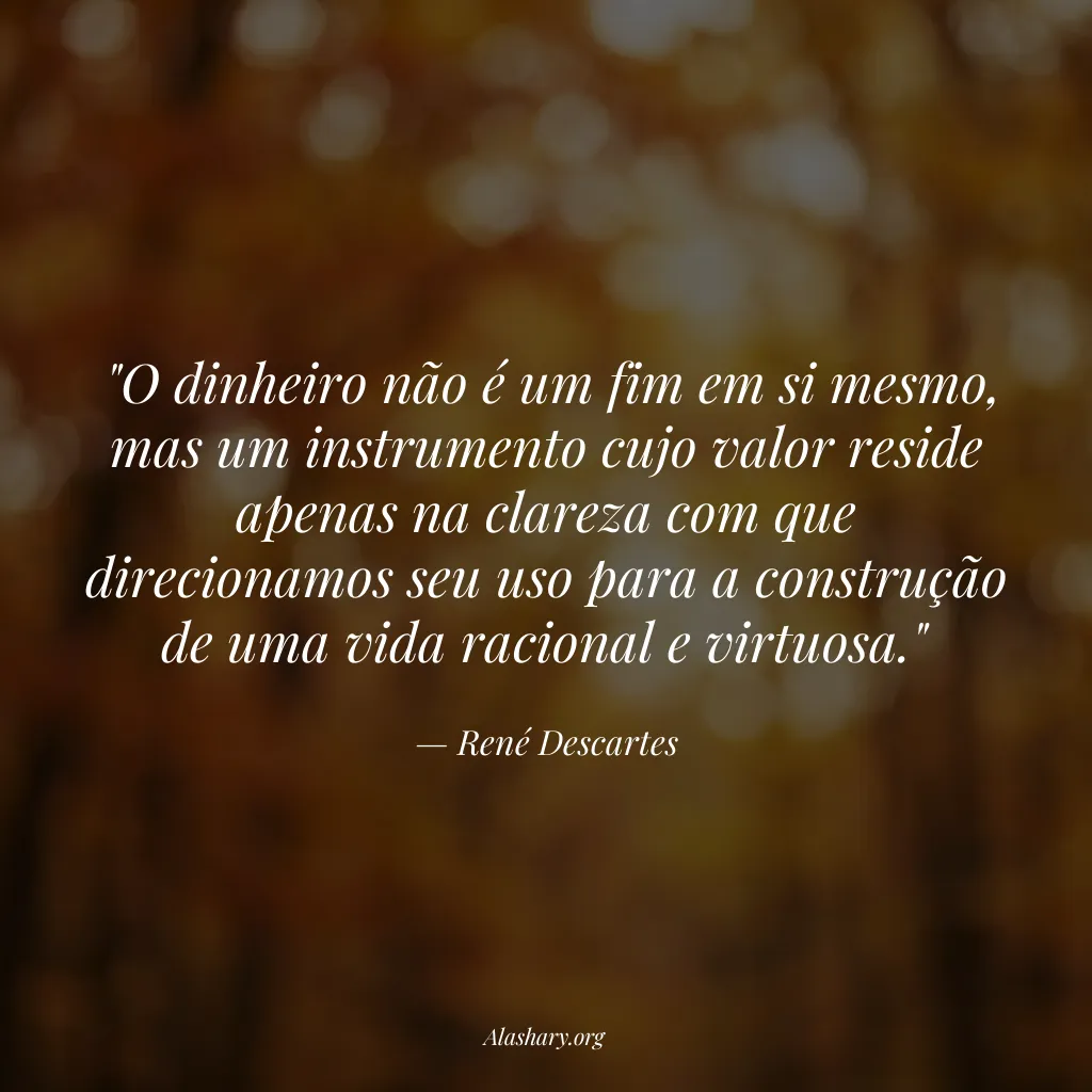 "O dinheiro não é um fim em si mesmo, mas um instrumento cujo valor reside apenas na clareza com que direcionamos seu uso para a construção de uma vida racional e virtuosa."