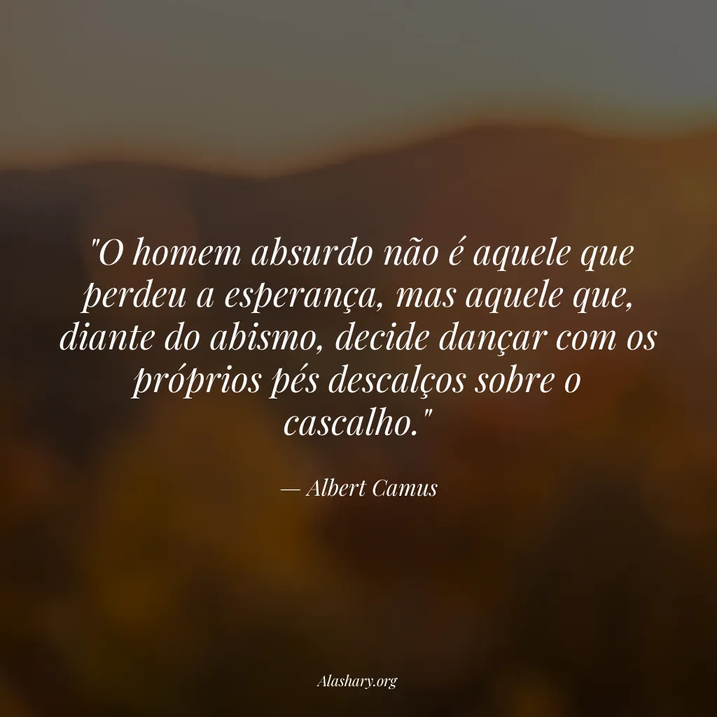"O homem absurdo não é aquele que perdeu a esperança, mas aquele que, diante do abismo, decide dançar com os próprios pés descalços sobre o cascalho."