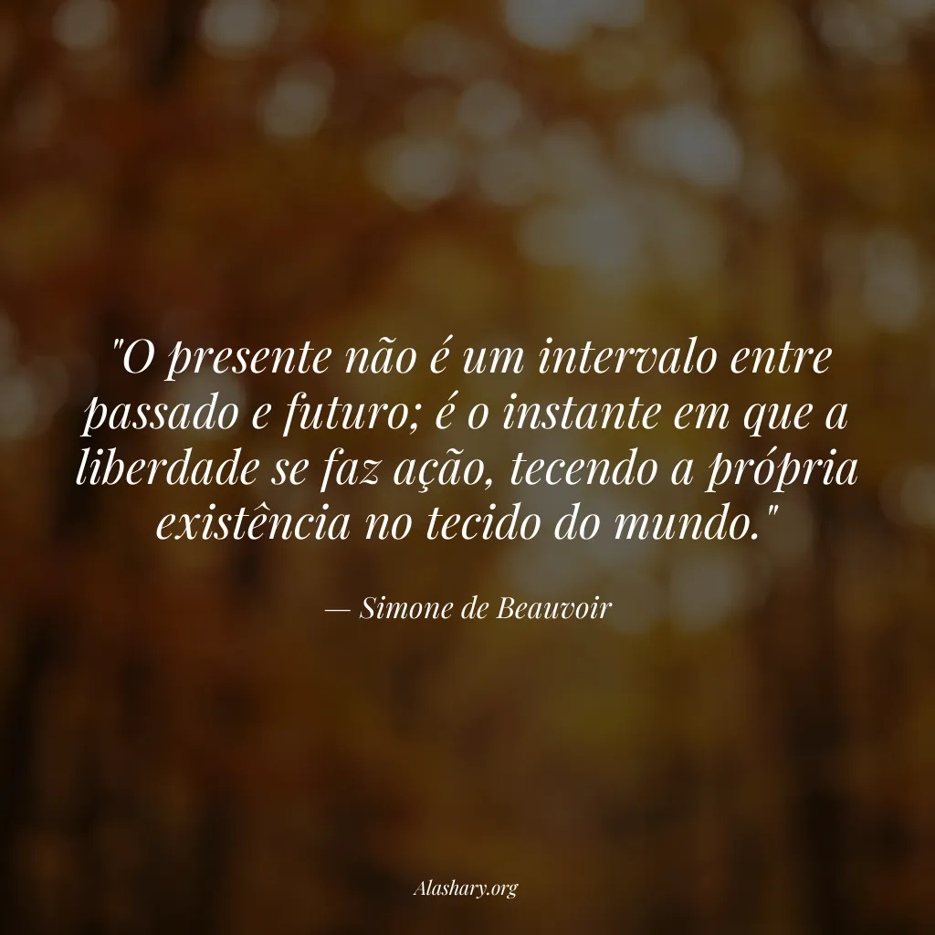Esta citação original, criada no espírito da filosofia existencialista de Beauvoir, reflete sua concepção de que não somos seres pré-determinados, mas projetos em constante devir. O presente é o palco da ação ética e da autenticidade.