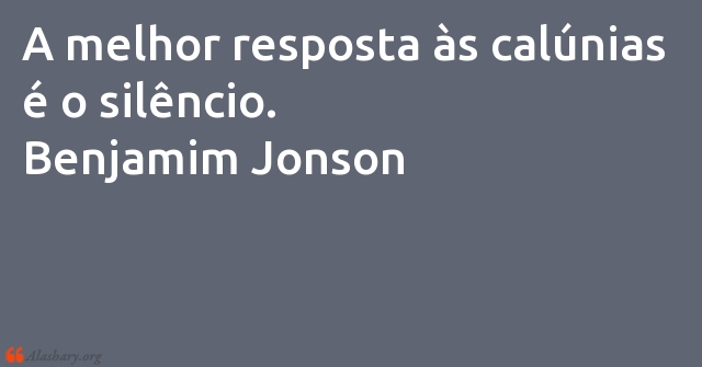 Benjamim Jonson: A melhor resposta às calúnias é o silêncio.