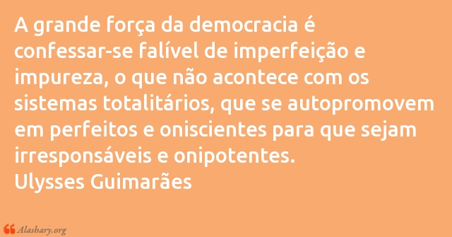 A grande força da democracia é confessar-se falÃvel de imperfeição e impureza, o que não acontece com os sistemas totalitários, que se autopromovem em perfeitos e oniscientes para que sejam irresponsáveis e onipotentes.