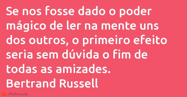 Se nos fosse dado o poder mágico de ler na mente uns dos outros, o primeiro efeito seria sem dúvida o fim de todas as amizades. Bertrand Russell