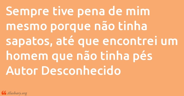 Sempre tive pena de mim mesmo porque não tinha sapatos, até que encontrei um homem que não tinha pés