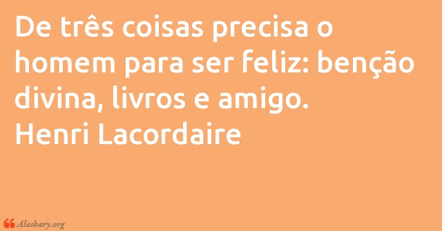 De três coisas precisa o homem para ser feliz: benção divina, livros e amigo. Henri Lacordaire