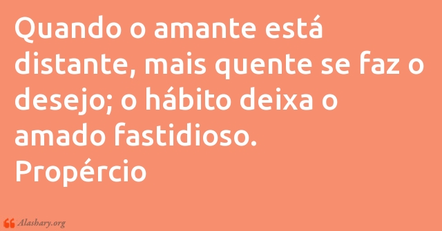 Quando o amante está distante, mais quente se faz o desejo; o hábito deixa o amado fastidioso. Propércio