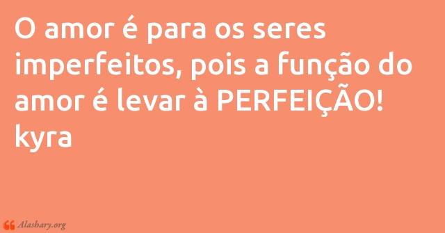 O amor é para os seres imperfeitos, pois a função do amor é levar à PERFEIÇÃO! kyra