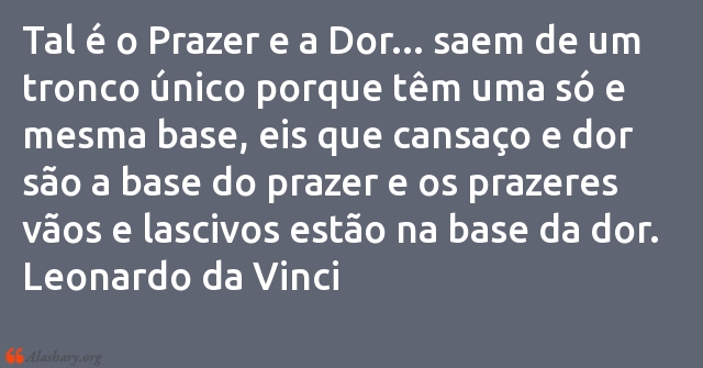 Tal é o Prazer e a Dor... saem de um tronco único porque têm uma só e mesma base, eis que cansaço e dor são a base do prazer e os prazeres vãos e lascivos estão na base da dor.