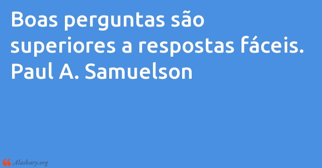 Boas perguntas são superiores a respostas fáceis. Paul A. Samuelson