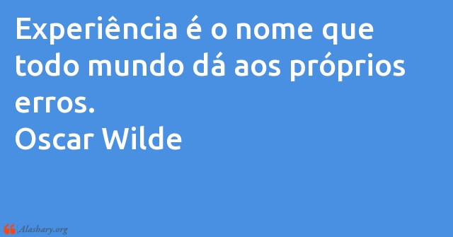 Experiência é o nome que todo mundo dá aos próprios erros. Oscar Wilde