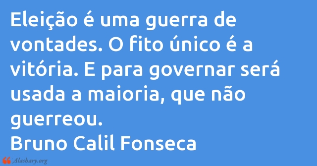 Eleição é uma guerra de vontades. O fito único é a vitória. E para governar será usada a maioria, que não guerreou. Bruno Calil Fonseca