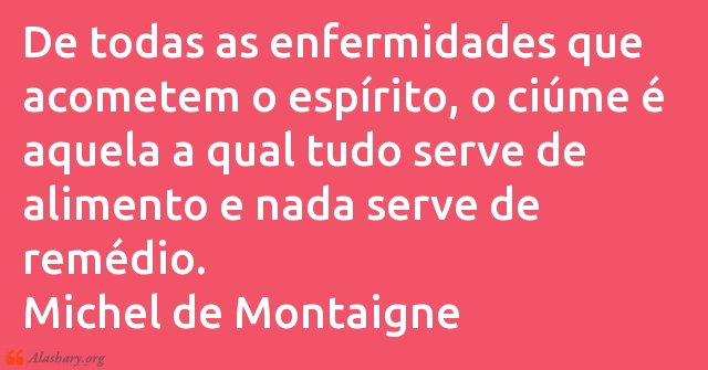 De todas as enfermidades que acometem o espírito, o ciúme é aquela a qual tudo serve de alimento e nada serve de remédio. Michel de Montaigne