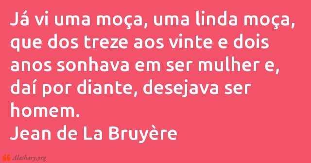 Já vi uma moça, uma linda moça, que dos treze aos vinte e dois anos sonhava em ser mulher e, daí por diante, desejava ser homem.