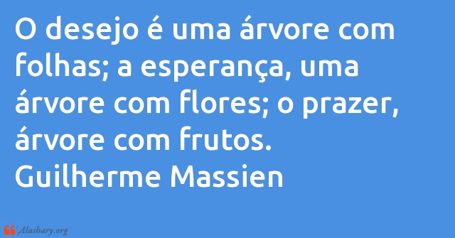 O desejo é uma árvore com folhas; a esperança, uma árvore com flores; o prazer, árvore com frutos. Guilherme Massien