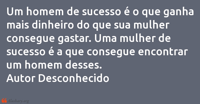 Um homem de sucesso é o que ganha mais dinheiro do que sua mulher consegue gastar. Uma mulher de sucesso é a que consegue encontrar um homem desses.