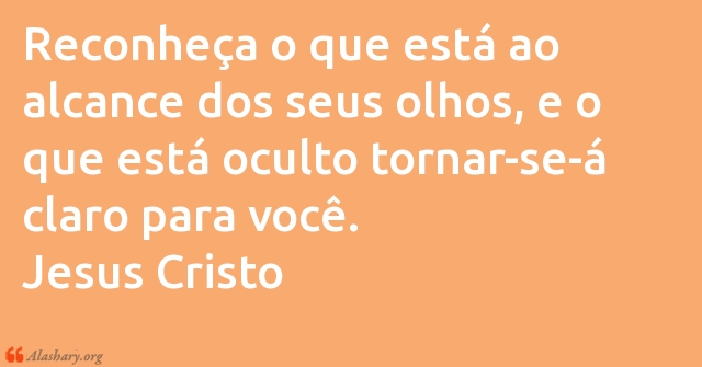 Reconheça o que está ao alcance dos seus olhos, e o que está oculto tornar-se-á claro para você. Jesus Cristo