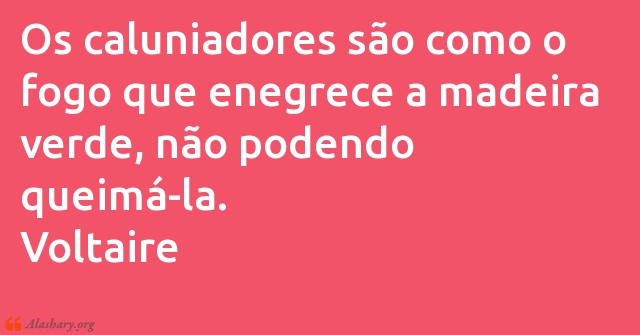 Os caluniadores são como o fogo que enegrece a madeira verde, não podendo queimá-la. Voltaire