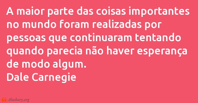 A maior parte das coisas importantes no mundo foram realizadas por pessoas que continuaram tentando quando parecia não haver esperança de modo algum.