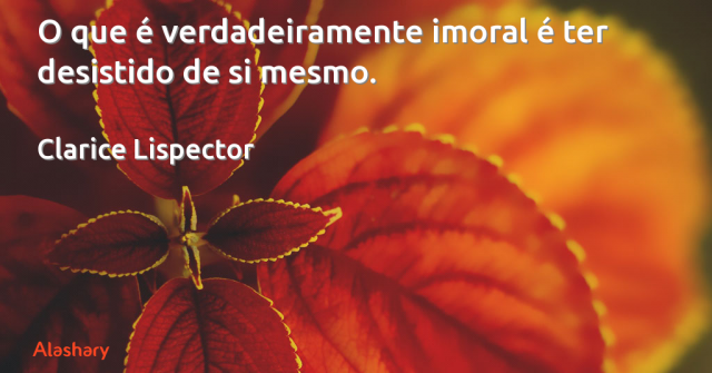 O que é verdadeiramente imoral é ter desistido de si mesmo. Clarice Lispector