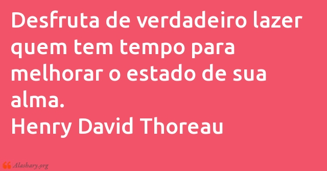 Desfruta de verdadeiro lazer quem tem tempo para melhorar o estado de sua alma. Henry David Thoreau