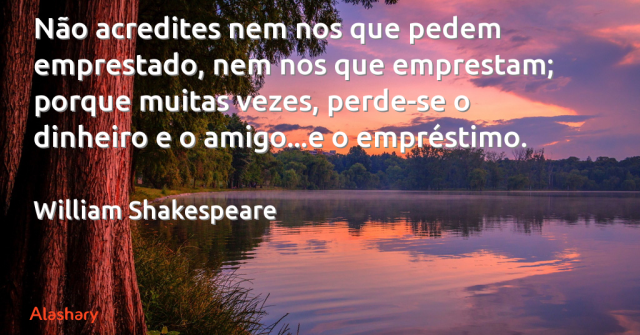 Não acredites nem nos que pedem emprestado, nem nos que emprestam; porque muitas vezes, perde-se o dinheiro e o amigo...e o empréstimo.