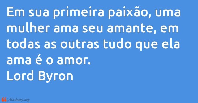 Em sua primeira paixão, uma mulher ama seu amante, em todas as outras tudo que ela ama é o amor. Lord Byron