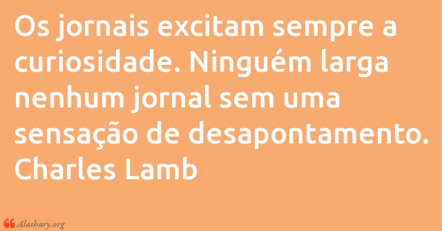 Os jornais excitam sempre a curiosidade. Ninguém larga nenhum jornal sem uma sensação de desapontamento. Charles Lamb