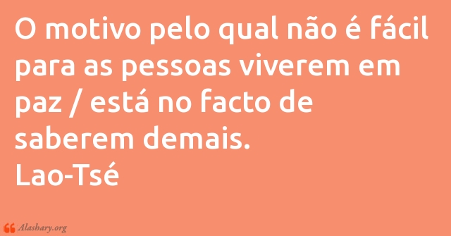 O motivo pelo qual não é fácil para as pessoas viverem em paz / está no facto de saberem demais. Lao-Tsé