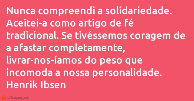 Nunca compreendi a solidariedade. Aceitei-a como artigo de fé tradicional. Se tivéssemos coragem de a afastar completamente, livrar-nos-íamos do peso que incomoda a nossa personalidade.