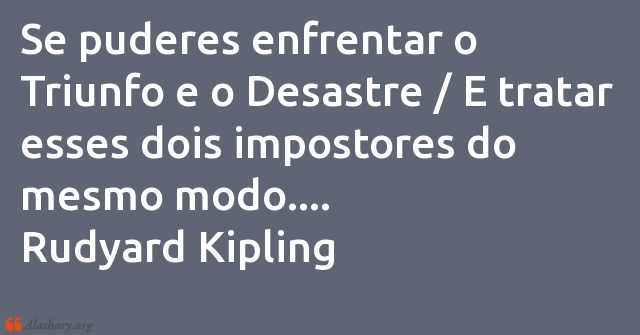 Se puderes enfrentar o Triunfo e o Desastre / E tratar esses dois impostores do mesmo modo.... Rudyard Kipling