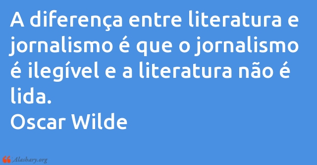 A diferença entre literatura e jornalismo é que o jornalismo é ilegível e a literatura não é lida. Oscar Wilde