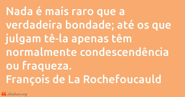 Nada é mais raro que a verdadeira bondade; até os que julgam tê-la apenas têm normalmente condescendência ou fraqueza.