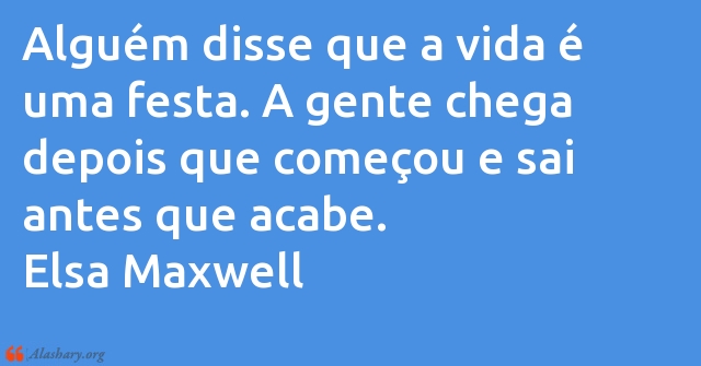Alguém disse que a vida é uma festa. A gente chega depois que começou e sai antes que acabe. Elsa Maxwell