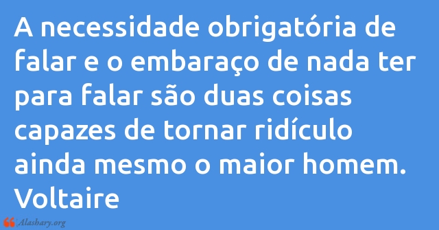 A necessidade obrigatória de falar e o embaraço de nada ter para falar são duas coisas capazes de tornar ridículo ainda mesmo o maior homem. Voltaire