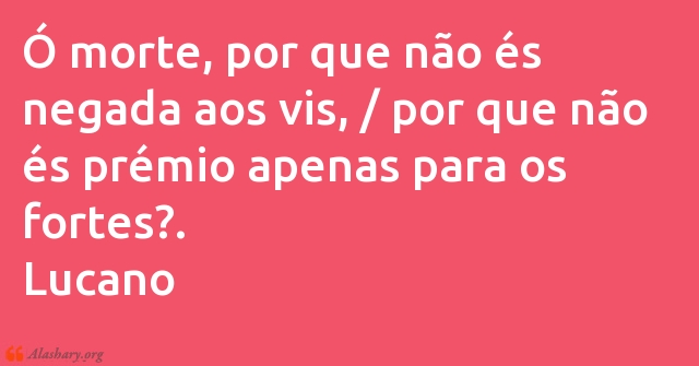 Ó morte, por que não és negada aos vis, / por que não és prémio apenas para os fortes?. Lucano