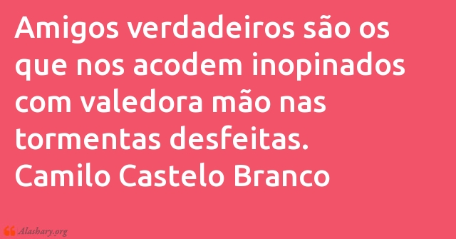 Amigos verdadeiros são os que nos acodem inopinados com valedora mão nas tormentas desfeitas. Camilo Castelo Branco
