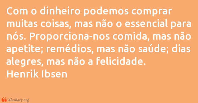 Com o dinheiro podemos comprar muitas coisas, mas não o essencial para nós. Proporciona-nos comida, mas não apetite; remédios, mas não saúde; dias alegres, mas não a felicidade.
