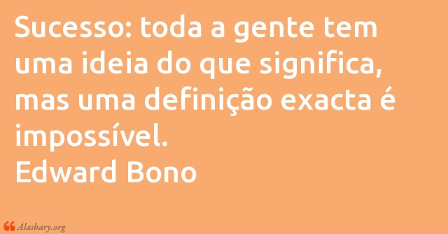 Sucesso: toda a gente tem uma ideia do que significa, mas uma definição exacta é impossível. Edward Bono