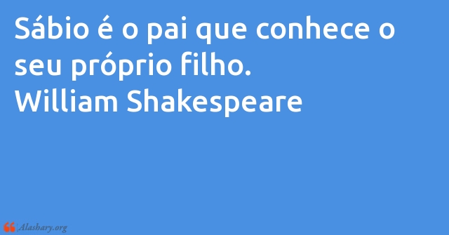 Sábio é o pai que conhece o seu próprio filho. William Shakespeare