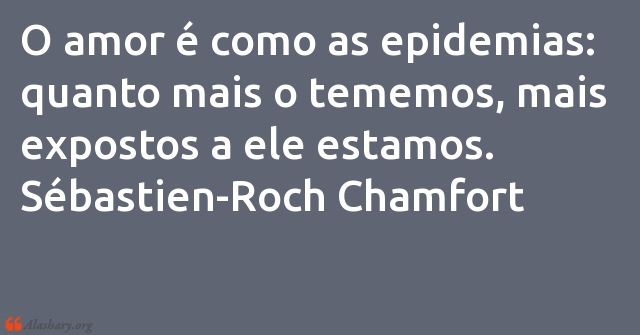 O amor é como as epidemias: quanto mais o tememos, mais expostos a ele estamos. Sébastien-Roch Chamfort