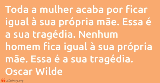Toda a mulher acaba por ficar igual à sua própria mãe. Essa é a sua tragédia. Nenhum homem fica igual à sua própria mãe. Essa é a sua tragédia.