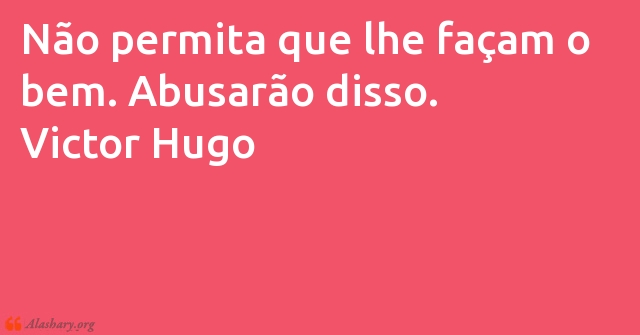 Não permita que lhe façam o bem. Abusarão disso. Victor Hugo