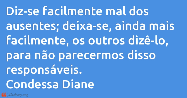 Diz-se facilmente mal dos ausentes; deixa-se, ainda mais facilmente, os outros dizê-lo, para não parecermos disso responsáveis. Condessa Diane