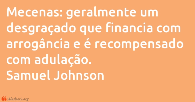 Mecenas: geralmente um desgraçado que financia com arrogância e é recompensado com adulação. Samuel Johnson