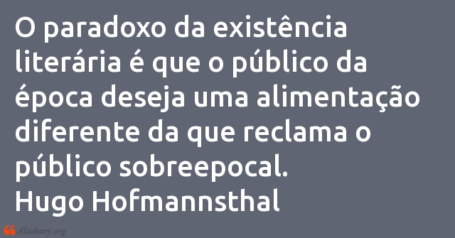 O paradoxo da existência literária é que o público da época deseja uma alimentação diferente da que reclama o público sobreepocal. Hugo Hofmannsthal
